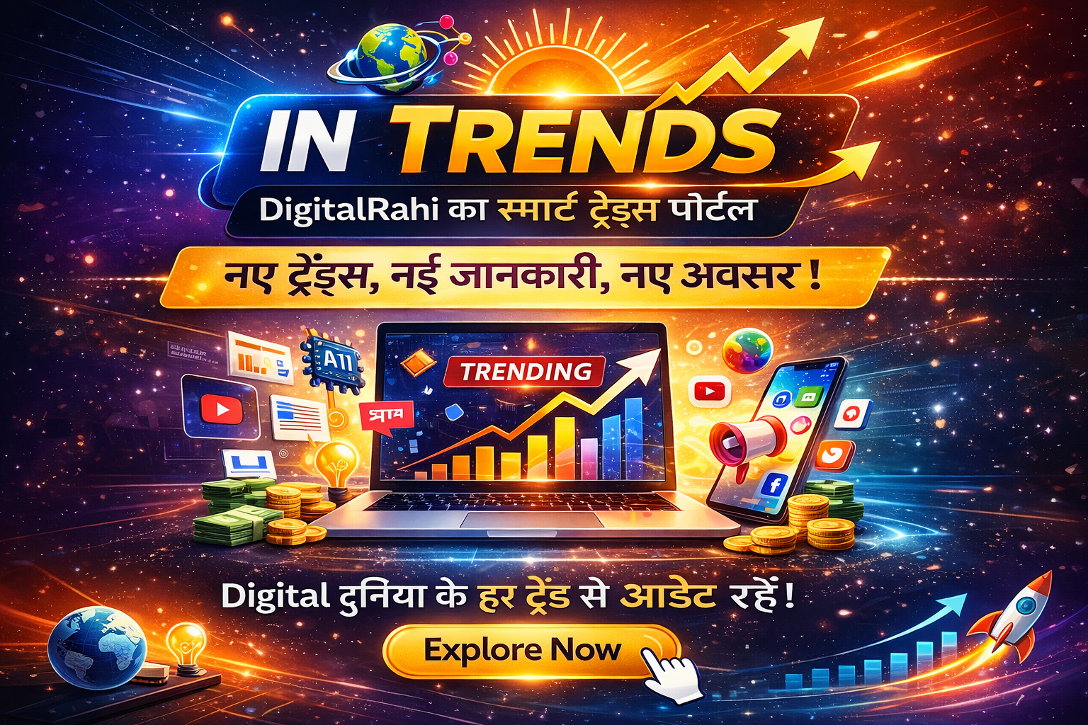 In Trends पोर्टल DigitalRahi का एक विशेष सेक्शन है, जहाँ आपको इंटरनेट, डिजिटल दुनिया और करियर से जुड़े लेटेस्ट ट्रेंड्स, नए अवसर और तेज़ी से वायरल हो रही जानकारियाँ सबसे पहले और सबसे आसान भाषा में मिलती हैं।